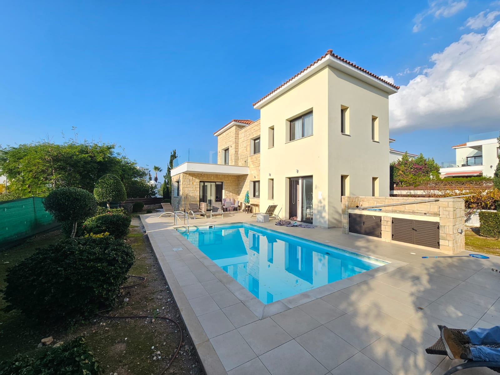This stunning 3-bedroom, 3-bathroom villa is available for rent in the desirable area of Lower Chloraka, priced at €2500. The villa comes fully furnished and is equipped with full air conditioning for ultimate comfort throughout the year. Enjoy the luxury of a private pool, perfect for relaxation and entertaining. With spacious living areas and a modern design, this villa offers a high standard of living in a peaceful yet convenient location. It’s the ideal home for those looking for comfort, privacy, and a touch of luxury.